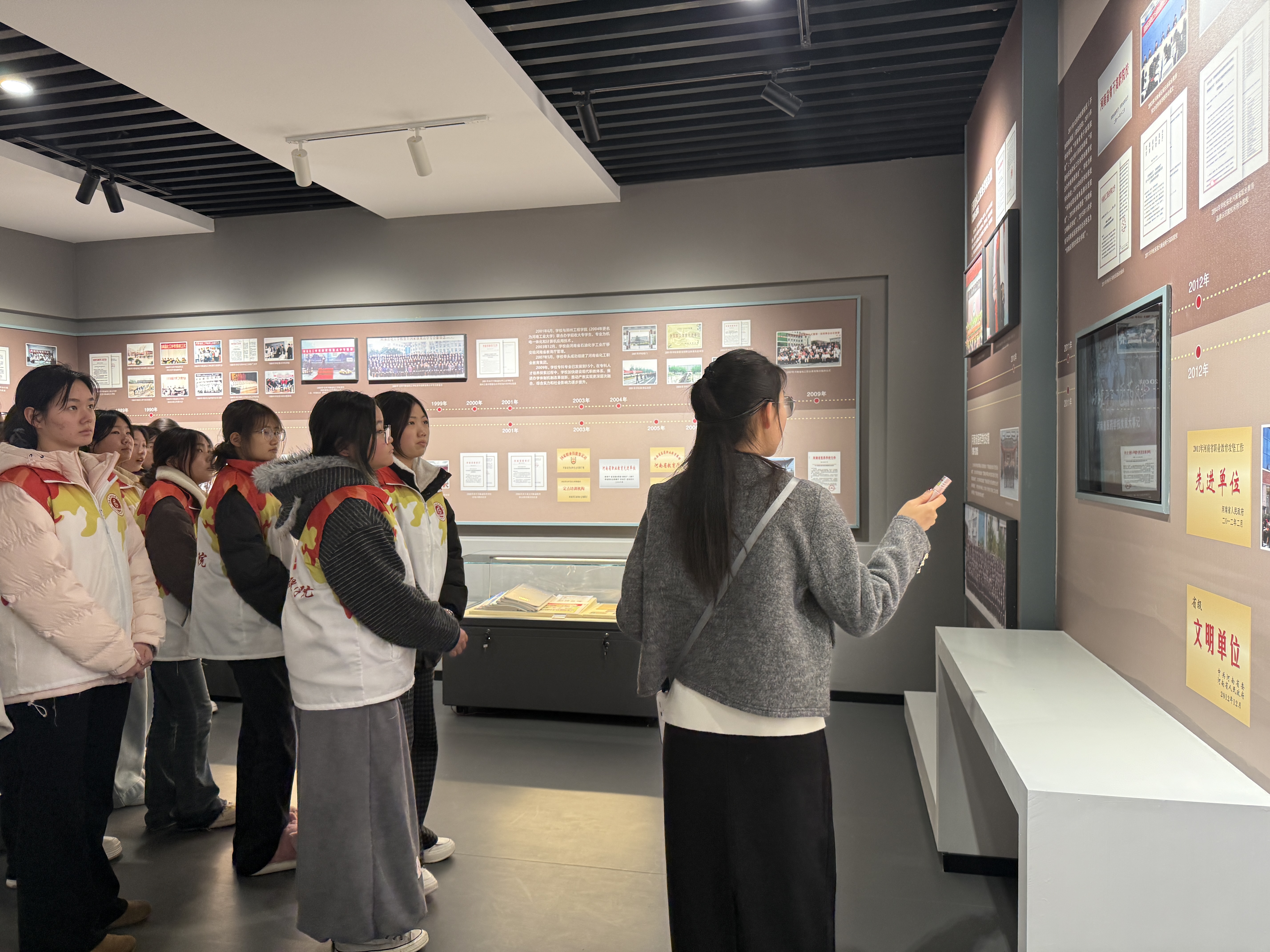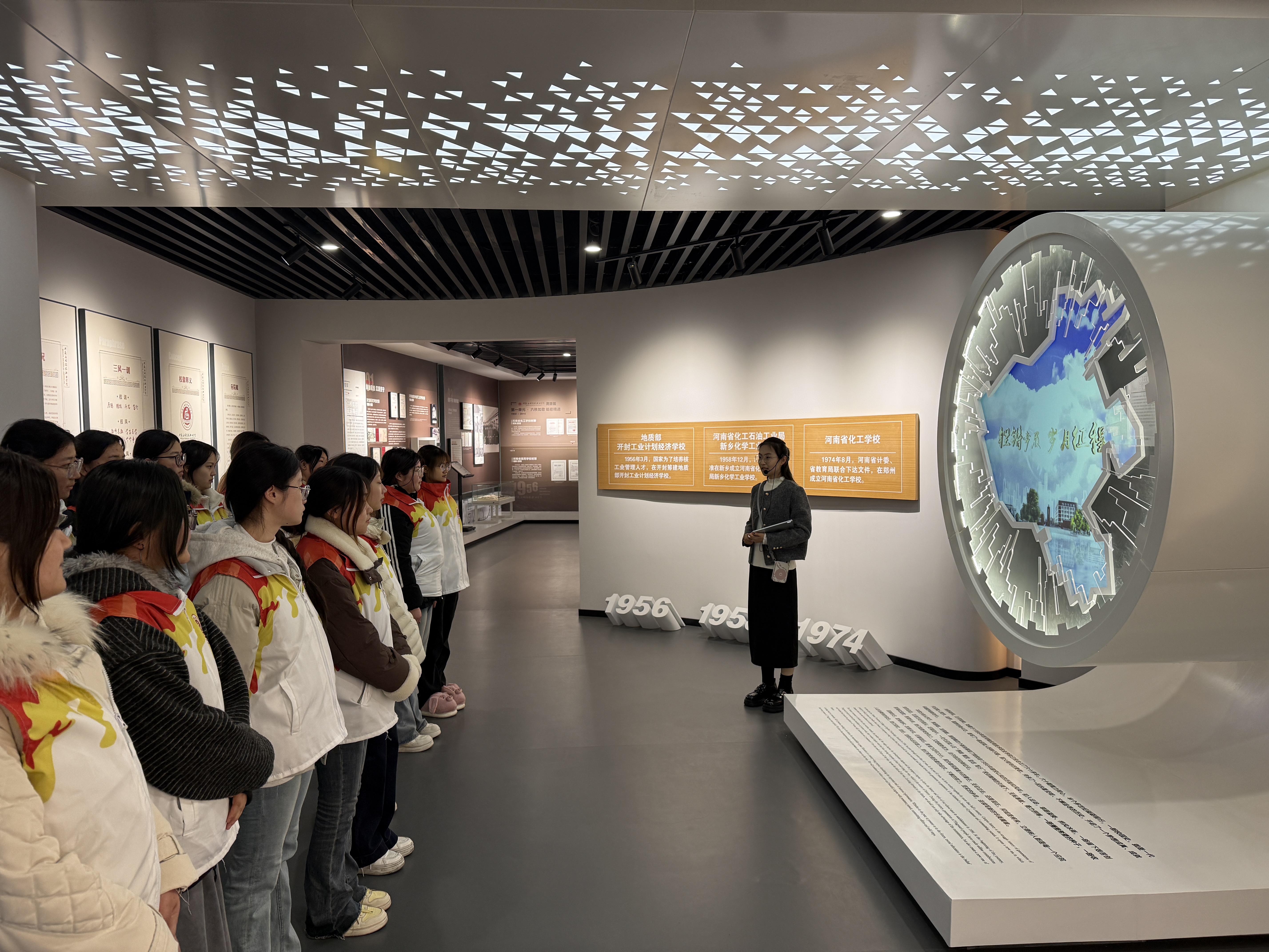 走进校史馆,一张张承载岁月的老照片、一件件见证发展的实物展品、一块块凝聚荣光的荣誉牌匾,生动展现了学校七十年栉风沐雨、砥砺前行的发展历程。在讲解员的细致讲解下,同学们认真聆听校史故事,全面了解学校从艰苦创业到蓬勃发展的光辉历程,深刻领会“厚德 精技 励志 笃行”的校训精神,在历史回望中坚定理想信念、厚植家国情怀与职业担当。