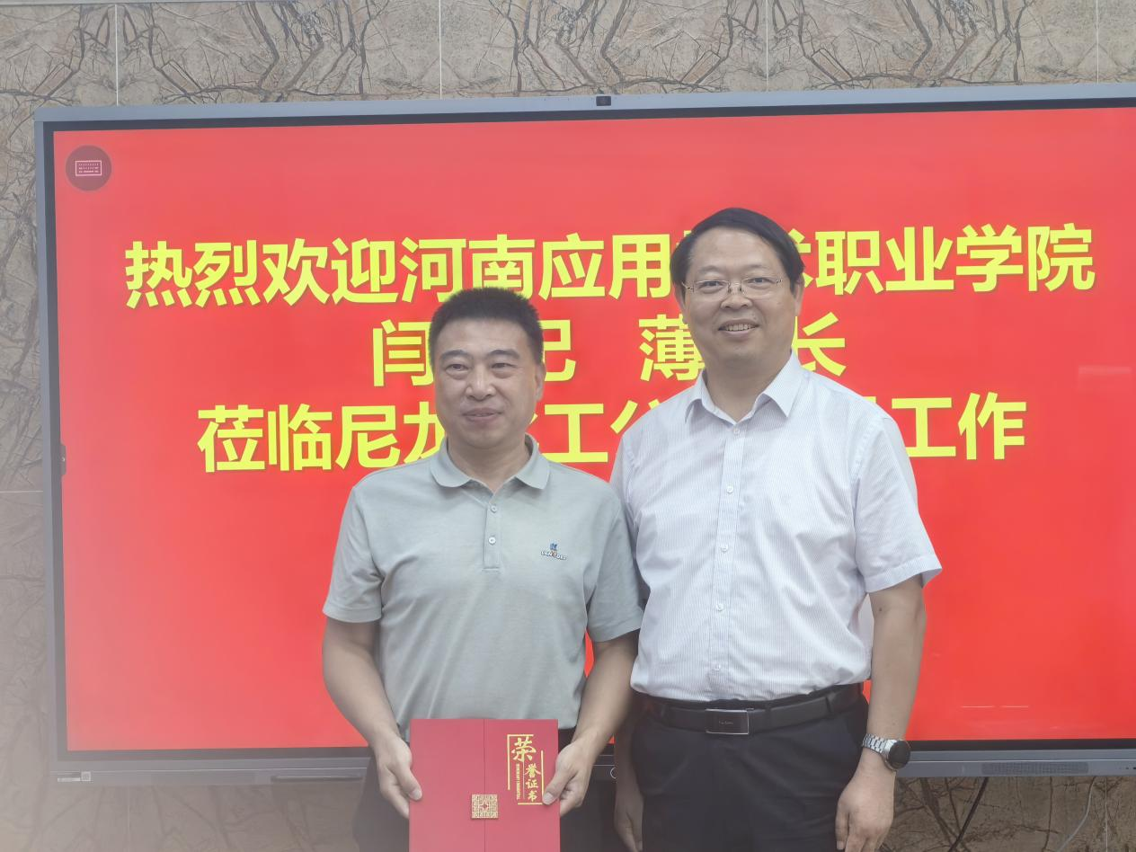 8月8日至8月9日,学校党委书记闫俊山、校长薄新党、副校长刘振民及相关部门负责人一行6人赴中国平煤神马控股集团有限公司旗下河南神马尼龙化工有限责任公司、中国平煤神马集团尼龙科技有限公司、河南神马氢化学有限责任公司和河南硅烷科技发展股份有限公司四家单位进行访企拓岗专项调研,并看望慰问优秀校友。河南神马尼龙化工有限责任公司总经理史红军、中国平煤神马集团尼龙科技有限公司总经理王全中全程陪同。