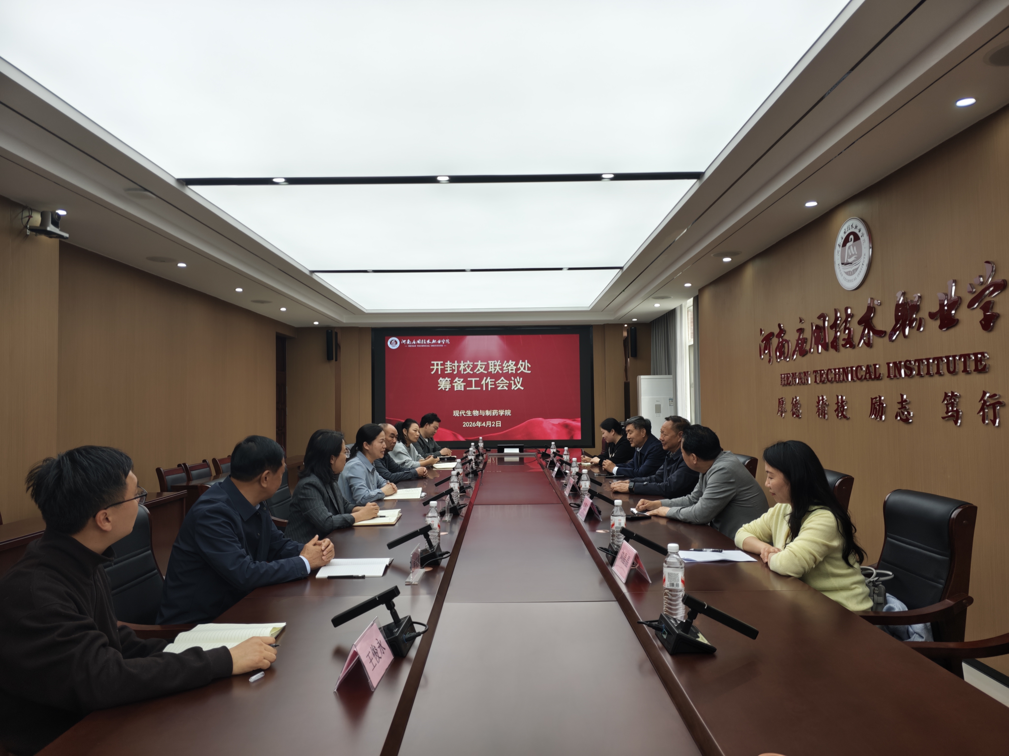 4月2日下午,现代生物与制药学院在开封校区南院四楼第一会议室组织召开我校开封校友联络处筹备会。院长王湘妍、校友顾问窦传斌、韩宝来、王保民及校友代表参会,会议由党总支书记梁艳主持。